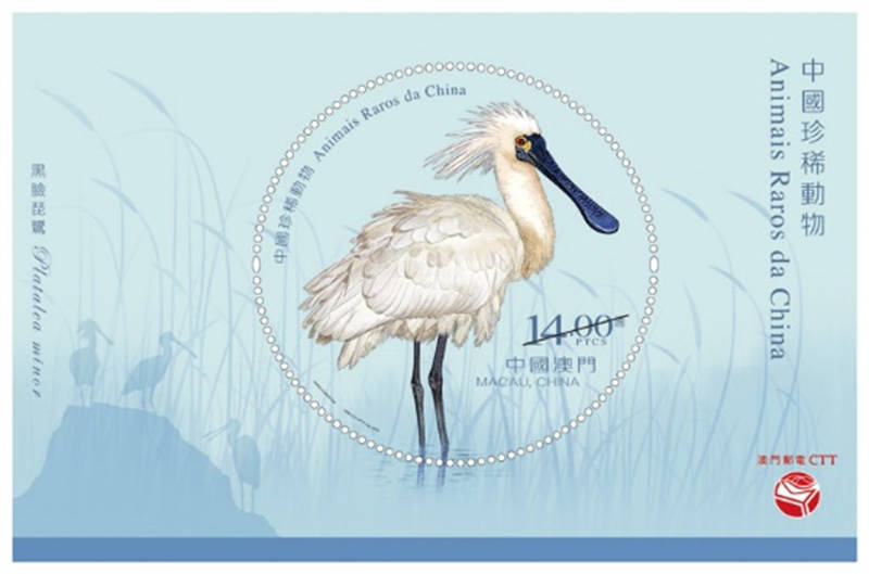 “中国珍稀动物”黑脸琵鹭小型张。澳门特区政府邮电局供图